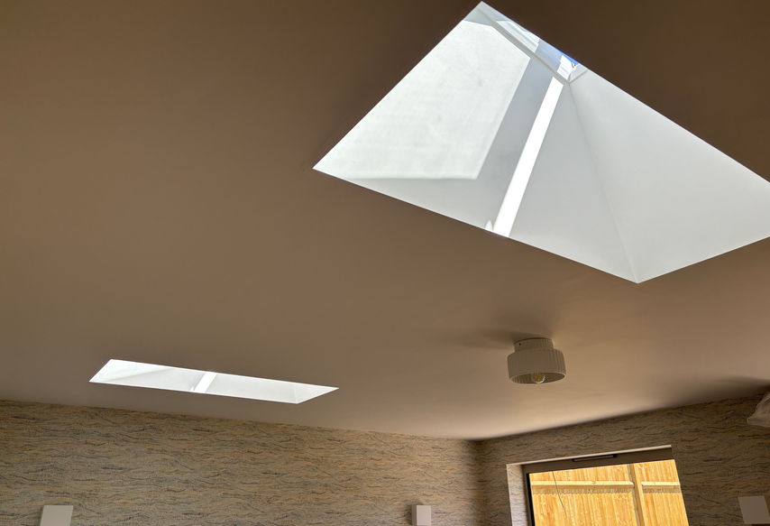 The 'boat roof' at the back of the house was replaced with a raised flat roof and large solar-powered velux