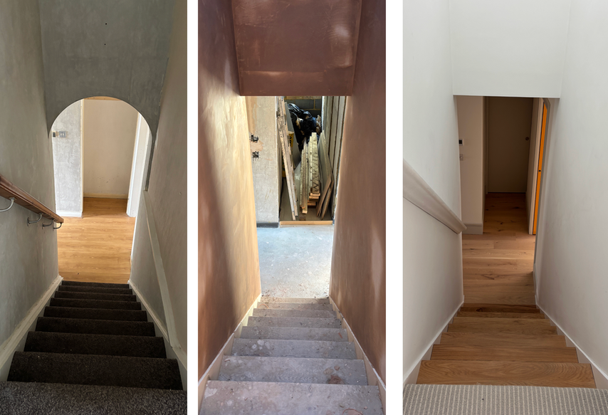 Both upper and lower stairs were clad in oak treads and risers. A velux was added in the upper stairwell and the arch replaced with a raised lintel